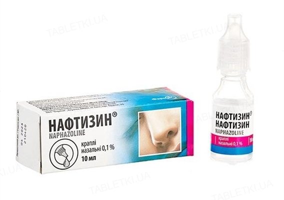 Фармакодинаміка. Нафтизин® чинить виражену судинозвужувальну дію на периферичні судини завдяки впливу на α-адренорецептори. При нанесенні на слизові оболонки зменшує набряк, гіперемію, ексудацію, що сприяє полегшенню носового дихання при ринітах. Нафазолін сприяє відкриттю і розширенню вихідних проток придаткових пазух носа і євстахієвих труб, що покращує відтік секрету і запобігає осіданню бактерій.Фармакокінетика.При місцевому застосуванні нафазолін повністю всмоктується.Терапевтична дія настає протягом 5 хвилин і триває 4–6 годин при інтраназальному застосуванні.