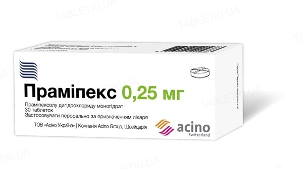 Праміпекс таблетки по 0.25 мг №30 (10х3)