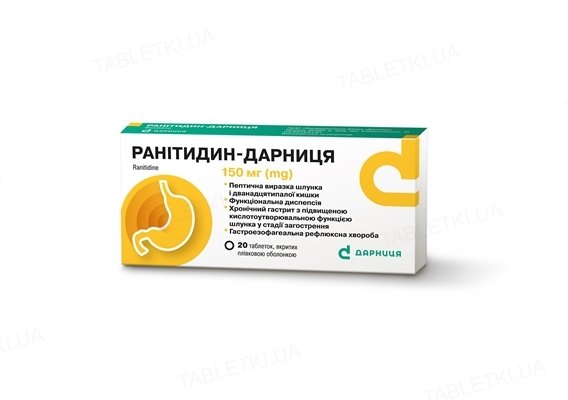 Призначати дорослим та дітям віком від 12 років. Приймати всередину, не розжовуючи, запиваючи невеликою кількістю води, незалежно від їди. Пептична виразка шлунка і дванадцятипалої кишки, не асоційована з Helicobacter pylori (у фазі загострення). Призначати по 150 мг (1 таблетка) 2 рази на добу вранці та ввечері або 300 мг (2 таблетки) одноразово на ніч протягом 4 тижнів. При виразках, що не зарубцювалися, продовжити лікування протягом наступних 4 тижнів. Профілактика пептичної виразки шлунка і дванадцятипалої кишки, асоційованої з прийомом НПЗЗ. Призначати по 150 мг (1 таблетка) 2 рази на добу вранці та ввечері на період терапії НПЗЗ. Функціональна диспепсія. Призначати по 150 мг (1 таблетка) 2 рази на добу вранці та ввечері протягом 2–3 тижнів. Хронічний гастрит із підвищеною кислотоутворювальною функцією шлунка у стадії загострення. Призначати по 150 мг (1 таблетка) 2 рази на добу вранці та ввечері протягом 2–4 тижнів. Гастроезофагеальна рефлюксна хвороба. Для полегшення симптомів призначати по 150 мг (1 таблетка) 2 рази на добу вранці та ввечері протягом 2 тижнів; при необхідності курс лікування продовжити. Для довготривалого лікування та при загостренні гастроезофагеальної рефлюксної хвороби призначати по 150 мг (1 таблетка) 2 рази на добу вранці та ввечері або 300 мг (2 таблетки) один раз на добу на ніч протягом 8 тижнів; при необхідності курс лікування продовжити до 12 тижнів. Пацієнти з вираженою нирковою недостатністю (кліренс креатиніну – менше 50 мл/хв). Добова доза лікарського засобу для цієї категорії пацієнтів – 1 таблетка (150 мг ранітидину).